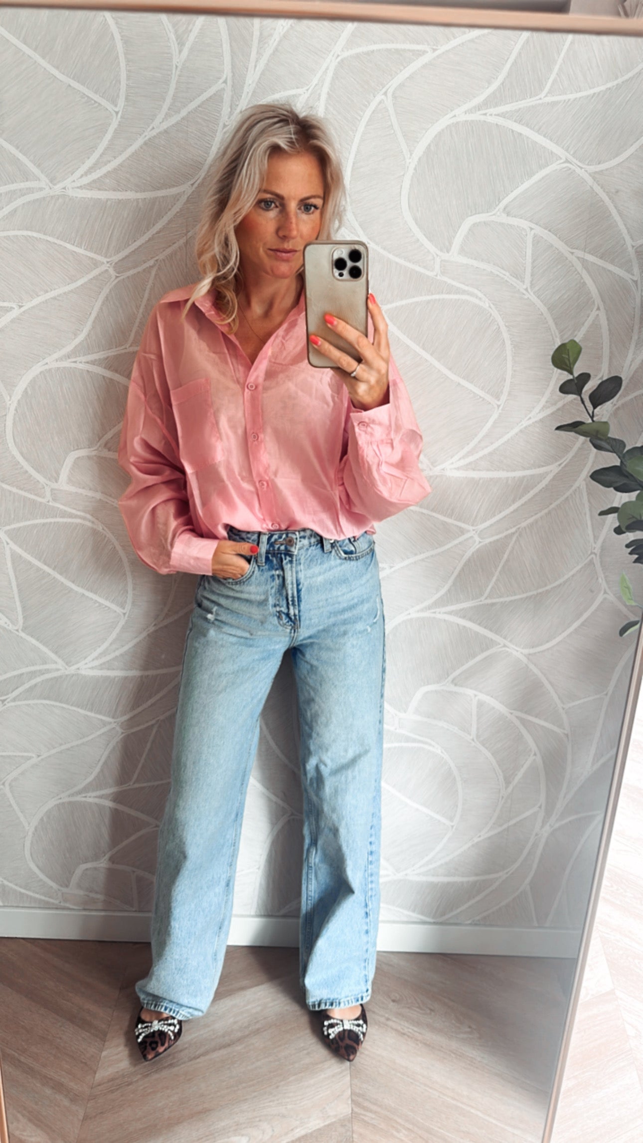Deze luchtige blouse is een echte musthave voor elke garderobe. De stof is licht doorschijnend en geeft de blouse een elegante, speelse uitstraling. Dankzij de oversized pasvorm en de extra lengte valt hij losjes en comfortabel, met veel bewegingsruimte.