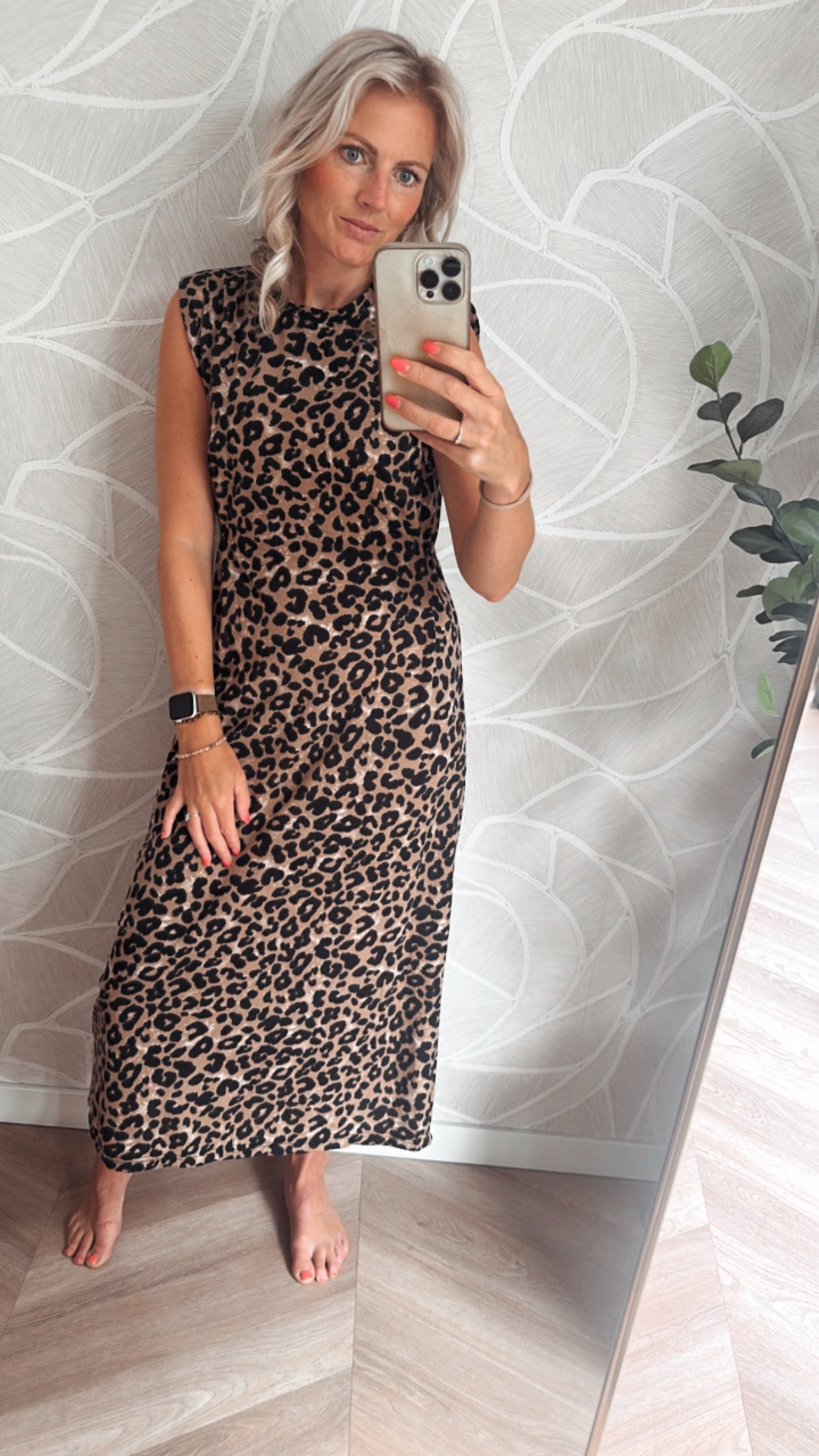 Deze panterprint midi jurk is dé musthave voor een stijlvolle en comfortabele look. Gemaakt van superzachte wafelstof die luchtig aanvoelt en heerlijk draagt. Dankzij de knoopjes aan beide zijkanten kun je de jurk eenvoudig tailleren, zodat hij altijd mooi aansluit op jouw figuur.