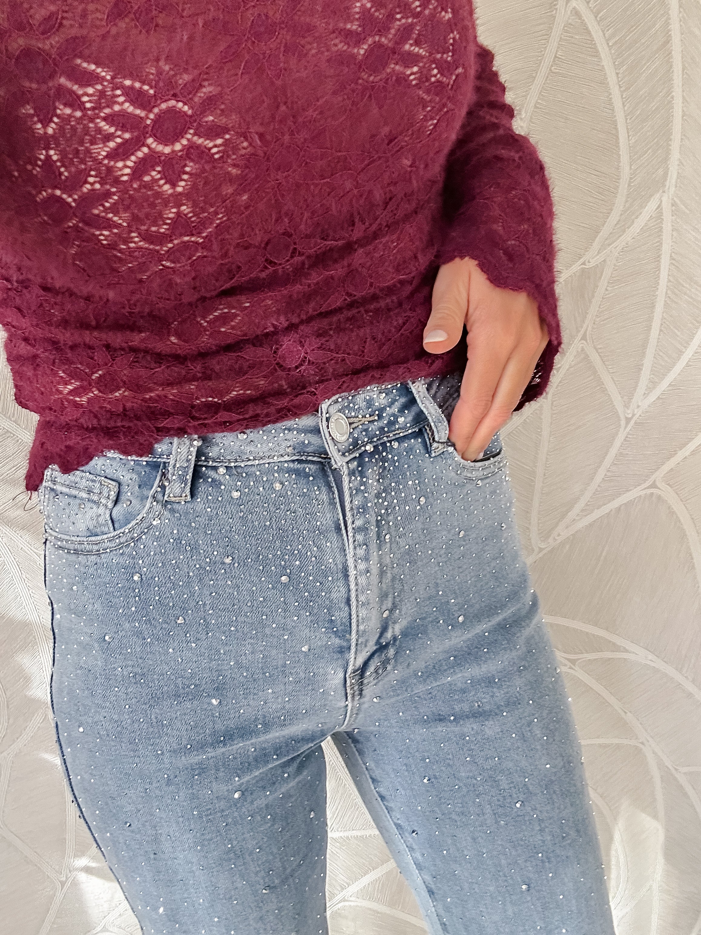 Voeg een beetje sparkle toe aan je outfit met deze prachtige light blue straight jeans met subtiele diamantjes. De broek heeft een full length straight fit en zit supercomfortabel dankzij de stretch (80% katoen, 18% polyester, 2% elasthaan). Perfect te combineren met een blouse voor een classy look of met een basic T-shirt voor een casual dag.